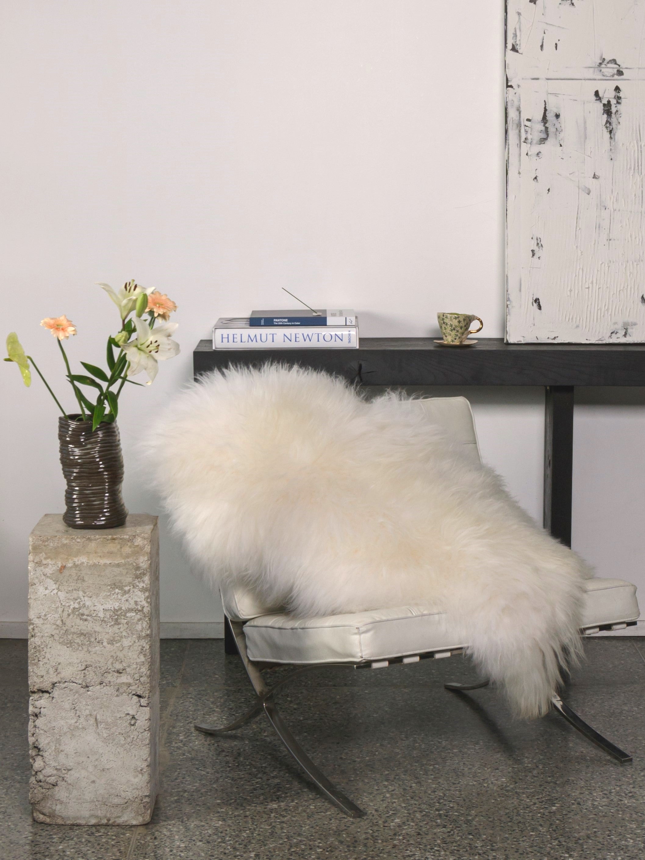 La pelliccia della pelle di pecora islandese si distingue per la sua varietà, disponibile in ben 17 tonalità. È altamente resistente al freddo, il che la rende indispensabile per gli islandesi durante i lunghi e rigidi inverni. La qualità della pelliccia è superiore, essendo resistente, impermeabile e lucida. La lunghezza della pelliccia può arrivare fino a 25 cm, rendendola significativamente più lunga di quella della pelle di pecora normale e aggiungendo un tocco di lusso a qualsiasi spazio.